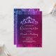 Lila und rosa Ombre Quinceanera aus fünfzehnten Geburtstag Party Einladung mit einem Silver Diamond Tiara. Diese Einladung eignet sich perfekt für eine elegante String Lights und Funkelnd Glitzer Confetti Girl's 15. Geburtstag Quinceanera Celebration. Bitte kontaktieren Sie den Designer, um passende Artikel zu erhalten.