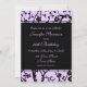 Individuelle Einladungen zum 16. Geburtstag in elegantem Schwarz und lila Blumenmuster. Fügen Sie Ihre Party-Details zu einer einzigartigen und stilvollen Geburtstagsfeier-Einladung hinzu.