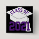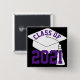 Geben Sie diesem Lila Class of 2024 Grad Cap Button zu Ihrem Lieblingsgrad geschlossen in diesem Jahr. Personalisieren Sie es mit ihrem Klassenzimmer. Dieser Knopf zeigt eine weiße Gradkappe auf schwarzem Hintergrund mit lila Schriftsatz. Es ist perfekt für Absolventen mit Schulgeist.