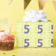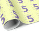 Es ist Zeit, das 5. Lebensjahr zu feiern! Die Nummer fünf ist lila gestrichen und hat lockige Hinweise, die sie umgeben. Es wird in einem Muster wiederholt und auf einem gelben Hintergrund auf dem Packpapier gedruckt. Die Hintergrundfarbe kann angepasst werden.
