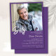 Foto modern minimalistisch lila und weiß 60. Geburtstag Einladung für eine lustige Geburtstagsparty. Das Alter kann geändert werden. Diese Einladung ist einfach und elegant, erwachsenen Meilenstein Geburtstagseinladung für Männer und Frauen. Die lila und weiße Hintergrundfarbe kann mit dem Designwerkzeug in jede beliebige Farbe geändert werden.