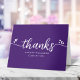 Vergewissern Sie sich, dass Ihr Lieblingsgrad allen, die ihren Meilenstein-Event unterstützt haben, eine Wertschätzung entgegenbringt! Schicken Sie diese atemberaubende, einfache, moderne, personalisierte Dankeschön-Karte. Ein lustiges, spielerisches visuelle mit weißer Schrift-Handschrift und niedlichen, spielerischen Herzen, zusammen mit ihrem Namen, ihrem Klassenjahr und ihrer Schule, überlagern einen lila Hintergrund. Auf der Vorderseite, personalisieren Sie mit dem Foto Ihrer Wahl, zusammen mit dem Namen Ihres Grades und das Jahr der Klasse. Fügen Sie eine personalisierte Notiz an der Innenseite in weichgrau Typografie, unter dem lila Cap-Icon, oder verlass leer für Ihre handgeschriebene Notiz. In dieser trendigen und stilvollen Kollektion sind auch passende Ankündigungen, Party-Einladungen, Cap-Toppers, Plaques und andere Abschluss-Goodies erhältlich. Garantiert, um ihrem besondere Anlass stilvollen Spaß zu verleihen! Geben Sie einfach den Namen und das Unterrichtsjahr Ihres Abschlusses ein, und Sie können diesen ganz einfach personalisieren. Fügen Sie eine personalisierte Notiz hinzu. Bitte schicken Sie mir eine Nachricht mit Fragen oder Wünschen.