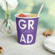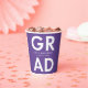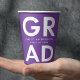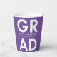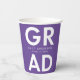 Personalisierte Abschluss-Papiertassen mit "Grad" in fett weißer Schrift mit einem lila Hintergrund oder einer Farbe Ihrer Wahl. Personalisieren Sie die Papiertassen des Abschlusses, indem Sie den Namen des Absolventen und das Abschluss Jahr. Die Papiertücher aus lila und weißem Abschluss sind sowohl für Partys der Oberstufe als auch für Uni-Abschluss geeignet.