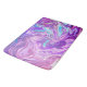 Abstrakte Badematte mit lila und hellblauen flüssigen Marmor.
