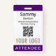 Personalisieren Sie unser berufliches Abzeichen mit Ihrem Logo, dem Namen der Teilnehmer und anderen benutzerdefinierten Texten. Es ist aus Kunststoff pvc und mit einem Lanyard, Clip oder einer einziehbaren Rolle erhältlich. Design in dunklen lila und anderen Farben mit einem modernen minimalistischen Design von MISOOK. Alle Farben sind anpassbar. Optional können Inhalte auf der Rückseite hinzugefügt werden. Einfache Anpassung des Besuchertitels (VIP-Gast, Besucher, Lautsprecher, etc.). Keine Mindestbestellmenge und keine Einrichtungsgebühr.