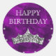 Lila Acrylic & Silver Glitzer Crown Geburtstag Runder Aufkleber