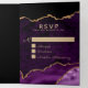 Lila und Gold Agate Geode Hochzeit Foto Tri-Fold Einladung. Eine großartige Möglichkeit, alle Ihre Hochzeitsinformationen Ihren Gästen mit einer Karte zu übermitteln. Leicht zu anpassende Vorlagen, plus Fotovorlage, um das glückliche Paar im Rampenlicht zu setzen! UAWG inklusive Akzeptierungen, Abnahmen und Anzahl der Teilnehmer.