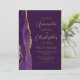 Der links Rand dieser eleganten, modernen Hochzeitseinladung zeichnet sich durch eine lila Aquarellgrenze aus, die mit Imitaten mit goldenem Glitzer bestickt wurde. Der anpassbare goldfarbene Text kombiniert Skript und serifenlose Schriftart auf einem tiefen lila Hintergrund. Auf der Rückseite ist ein lila und goldenes Design zu sehen.