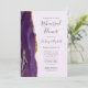 Die links Seite dieses eleganten, modernen Hochzeitsgeschehens mit Probe besticht durch eine lila Aquarellgrenze mit vergoldetem Imitat-Glitzer. Der anpassbare Text kombiniert handgeschriebene Holzkohle, Copperplate und kursiv Schriftart auf einem blassgrauen Lavendelhintergrund. Auf der Rückseite ist ein lila und goldenes Design zu sehen.