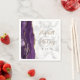 Diese eleganten, modernen Hochzeitsnapkins sind mit einem lila Aquarelldesign ausgestattet, das mit Imitaten mit goldenem Glitzer bestickt ist. Passen Sie das schwarze Datum auf grauem und weißem Marmorboden an, ebenso wie die Namen der Braut und des Bräutigams in goldfarbener handschriftlicher Kalligraphie auf einem großen, blassgrauen Ampersand.