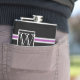 Schwarzer Kolben mit variabler Akzent-Farbe und Monogramm. Personalisieren Sie die Monografie und den Text nach Bedarf und ändern Sie die Hintergrundfarbe, um Ihre Hochzeit zu ergänzen.