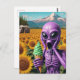 Lila Alien Schmelzen der Eiscreme Postkarte
