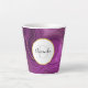 Eine latte Tasse mit elegantem abstraktem Design. Dunkle, lila Amethystfarbe mit goldfarbenen Streifen, die zwischen Schichten eingebettet sind. Reichhaltiges und schönes Design. Oben platziert ist ein weißer Rahmen mit einem goldenen Rahmen aus Imitat, in dem der personalisierte Monogramm-Initial und Name enthalten ist.