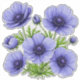 Blaue-lila Anemonenblüten mit detaillierten Blütenblättern und üppigem grünem Laub. Ideal für Florales Design, Grußkarten, Kunstdrucke und naturthematische Projekte mit einer ruhigen, farbenfrohen Atmosphäre.