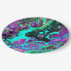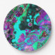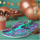 Lila, Aquamarin, blau, schwarz, Abstraktes Fluid Pappteller