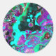 Lila, Aquamarin, blau, schwarz, Abstraktes Fluid Runder Aufkleber
