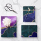 Lila & Aquamarin & Gold Glitzer Peacock Agate Geschenkpapier Set