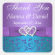 Diese 1,5" quadratische lila und türkisblaue blühende Gastgeschenk Hochzeit danke Ihnen Aufkleber und/oder Umschlag Aufkleber hat ein lila PRINTED Band und Bogen mit einem Paar von PRINTED Diamantschmuck und IMITAT Glitzer verbunden Herzen auf ihm, dass die Einladung entspricht, die unten gezeigt. Sie können den Text so ändern, dass er sagt, was immer Sie gewollt haben, und Sie können auch die Größe des Aufklebers auf 3 Zoll ändern, was ideal wäre, um Ihre Hochzeit oder Gastgeschenke zu schmücken. Wenn Sie weitere passende Artikel in diesem Design benötigen, senden Sie Ihre Anfrage bitte an niteowlstudio@gmail.com.