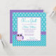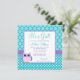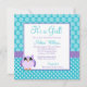 Niedliche Eulenbabymädchen-Duscheneinladungen. Aufmachung der Polkapunkte und -streifen in den Schatten des lila und aquamarinen Blaus.