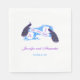 Lila aquamarine Monogramm-Pfau-romantische Hochzeits-Papierservietten. BlissfulWedding © bei Zazzle. Zwei schöne Pfaus in der Liebe auf Vintager Fahne und im Text in einem lila und aquamarinen Blau mit Monogramminitialen, Braut und Vornamen und Hochzeit des Bräutigams datieren, stellen einzigartigen, stilvollen Servietten für den Hochzeits-Empfang oder einen Polterabend her. Anderes färbt verfügbar.
