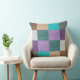 Dieses große moderne Throwkissen hat dekorative Quadrate in Lila, in aquamarinem, Türkis, Flieder, Braun, Beige und Grau. Vervollkommnen Sie auf einer zeitgenössischen Couch oder Ihrem Lieblingsstuhl.