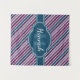 Stilvolle, trendige, lila, weiße, aquamarine, blaue Streifen-Muster im Hintergrund, ergänzt durch ein aquamarines blaues Etikett mit individualisierbarem Namen und Monogramm-Vorlage.