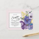 Elegante und botanische lila und gelbe Aquarellblume auf rosa Überraschung 75. Geburtstagsfeier Einladung Postcard.