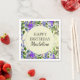 Lila Aquarellblüte auf gelben personalisierten Geburtstagsservietten