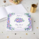Dieses Gästebuch mit Babydusche bietet hübsche lila Aquarellfarben-Blume. Personalisieren Sie es mit einem Namen. Dieses Gästebuch ist Teil einer Kollektion, die eine komplette Auswahl an passenden Artikeln enthält. Besuchen Sie die Kollektionsseiten in unserem Geschäft, um die komplette Produktpalette zu sehen, die Sie für Ihre Babydusche individuell gestalten können.