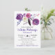 Farbe des Jahres "Ultra Violet"! Hübsche lila Aquarellfarben Party Einladungen mit Blumenbeete in Rosa- und lila Farbtönen mit naturbelassenem Boho-Ambiente. Enthält eine Auswahl an Blume, Zweigen und einer Feder.