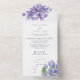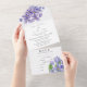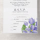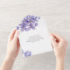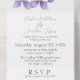 Diese Einladung zur Hochzeit bietet ein All-in-One-Design mit einer R.S.V.P.-Karte, die am Ende enthalten ist. Der Hintergrund ist schlicht und elegant, mit lila lila Blume in Aquarellfarben, die an den oberen und unteren Rand grenzen.