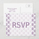 Trendy und stilvolle Tribal Arrows Wedding RSVP Postcard mit einem lila und weißen Pfeil Muster Hintergrund. Einfach an Ihre Hochzeitsdetails anpassen. Klicken Sie für weitere Anpassungsoptionen auf die Schaltfläche Anpassen.