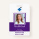 Dieses moderne lila Sicherheits-ID-Abzeichen verfügt über Ihren Namen, Ihre Rolle, Ihren Titel und Ihr Foto. Geeignet für Krankenhaus- und Medizinalangestellte. Auf dem Mockup ist das Design lila, aber man kann die Farben leicht ändern.