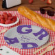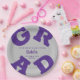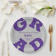 GRAD in fett lila Schriftzeichen rund um die Ränder dieser silbergrauen Graduierungsparty Papier-Teller - erhältlich in 2 Größen. Herzlichen Glückwunsch über den Namen Ihres Absolventen und die Klasse von unten. Die perfekte Ergänzung zur Tischdekoration für kommende Partys. **TIPP: Klicken Sie auf "CUSTOMIZE", klicken Sie auf "COLOR" rechts oben; geben Sie Ihren Farbhex-Code in das Feld #xxxxxx ein, um Ihren Schulfarben zu entsprechen. SIEHE GANZE SAMMLUNG von vorgefertigten Farbkombinationen und mehr in unserem Shop.