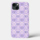 Trippiges iPhone Gehäuse mit einem seltsamen Augenmuster in Pastellfarben lila und rosa. Dieses lustige psychedelische Muster ähnelt aufgrund seiner geometrischen Formen dem modernen Retro-Stil der Mitte des Jahrhunderts.