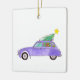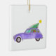Lila Auto mit Weihnachtsgeschenken Keramikornament