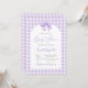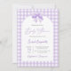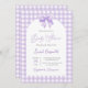 Lila Bow Baby Dusche Neutrale Einladung mit Bugs, Lavendel Gingham Baby Dusche Einladung