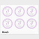 Rundaufkleber für Babydusche mit lila Babyfußdesign und Punkt-Hintergrund.