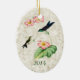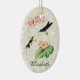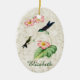 Das Ornament zeigt eine Vintage Abbildung des Lila Thornbill-Kolibri. Ein erwachsener Kolibri mit lila Rücken und metallisch grünem Hals, und ein Babyvogel mit Kehlkehlhalm auf einer Begonia-Pflanze mit rosa Blume, mit einer leicht vergoldeten Marmorstruktur. Personalisierungsoptionen auf Vorder- und Rückseite, oder Textentfernen für eine elegante naturlich inspiriert Ergänzung zu jedem Weihnachtsbaum. Perfekter jeden Anlaß für Liebhaber von Kolibri.