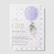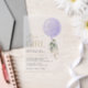Mit dieser charmanten Babydusche laden Sie Freunde und Familie in Stil und Set zu einem erlebnisreichen Tag ein. Design bietet lila Ballon mit Eukalyptus-Blätter.