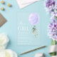 Mit dieser charmanten Babydusche laden Sie Freunde und Familie in Stil und Set zu einem erlebnisreichen Tag ein. Design bietet lila Ballon mit Eukalyptus-Blätter.