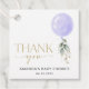 Fügen Sie Ihrer Babydusche mit diesen stilvollen und unvergesslichen Party eine persönliche Touch hinzu! Das Design bietet einen lila Ballon mit Eukalyptus-Blätter auf weißem Hintergrund.