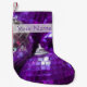 Stilvoller Strumpf mit glitzernden lila und silbernen Weihnachtsbaubeln. Ein individuell anpassbares Design für Sie, um mit Ihrem eigenen Text, Bildern und Ideen zu personalisieren. Bild erstellt mit einem Original-Foto und digitale Techniken.