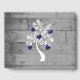 Nehmen Sie die Gäste mit einem Lila Gästebuch des Herzens auf Ihren großen Tag auf. Das Design des Gästebuches ist aus grauem Holz mit einem Baum mit blühenden Herzen an den Ästen. Mit diesem Design sind auch weitere Hochzeitswaren erhältlich.