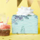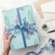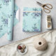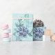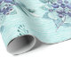 Lila Beeren und Blaue Federn auf tieftürkisfarben Geschenkpapier