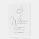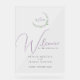 Hochzeitliches Begrüßungszeichen mit lila Beeren und weich grünem Blattmonogramm. Personalisieren Sie Ihre eigenen Monogramm-Initialen, den Namen des Paares und das Hochzeitstermin. Einzigartig handgemalte Monogrammkunst in Aquarellfarbe, entworfen von Sarah Trett für www.mylittleedenweddings.com auf Zazzle.