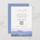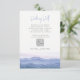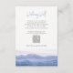 Hochzeitswunsch QR Code Einschließungskarte mit Morgenberglandschaft. Weiche blaue Naturlandschaft. Silhouetten von Bergen und Leuchten Blume. Aquarellmaler Hintergrund Hochzeitszauber QR Code Umschließungskarte. Lila Bergsammlung.