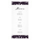 Lila Berge und Nadelbäume Zeremonie und Party Hochzeitskarte . Ein elegantes Hochzeitsdesign mit einer Bergkette durch Koniferen und Ihre Namen in handgeschriebenem Stil. Auf der Rückseite befinden sich dunkel-weiße Ränder mit weißen Polka-Punkten oben und unten auf der Karte.