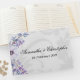 Dieses wunderschöne Gästebuch mit eleganten Damast-Mustern in Weiß und Weiß und einem bezaubernden lila Beeren- und Blume-Bouquet am Rande wurde speziell für eine Hochzeitsfestsaison entworfen, die Sie hier in vollem Umfang sehen können: https://www.zazzle.com/collections/purple_floral_berries_and_gray_damask-119535815384688813