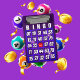Lila Bingo Card Mini Zwischenablage Dunkler lila Hintergrund mit einer leichteren Bingokarte, einem roten Geschenkzentrum und kleinen Bingochips. Gut, Ihre Tabs und Nebenspiele zu halten oder einfach nur, weil Sie B I N G O